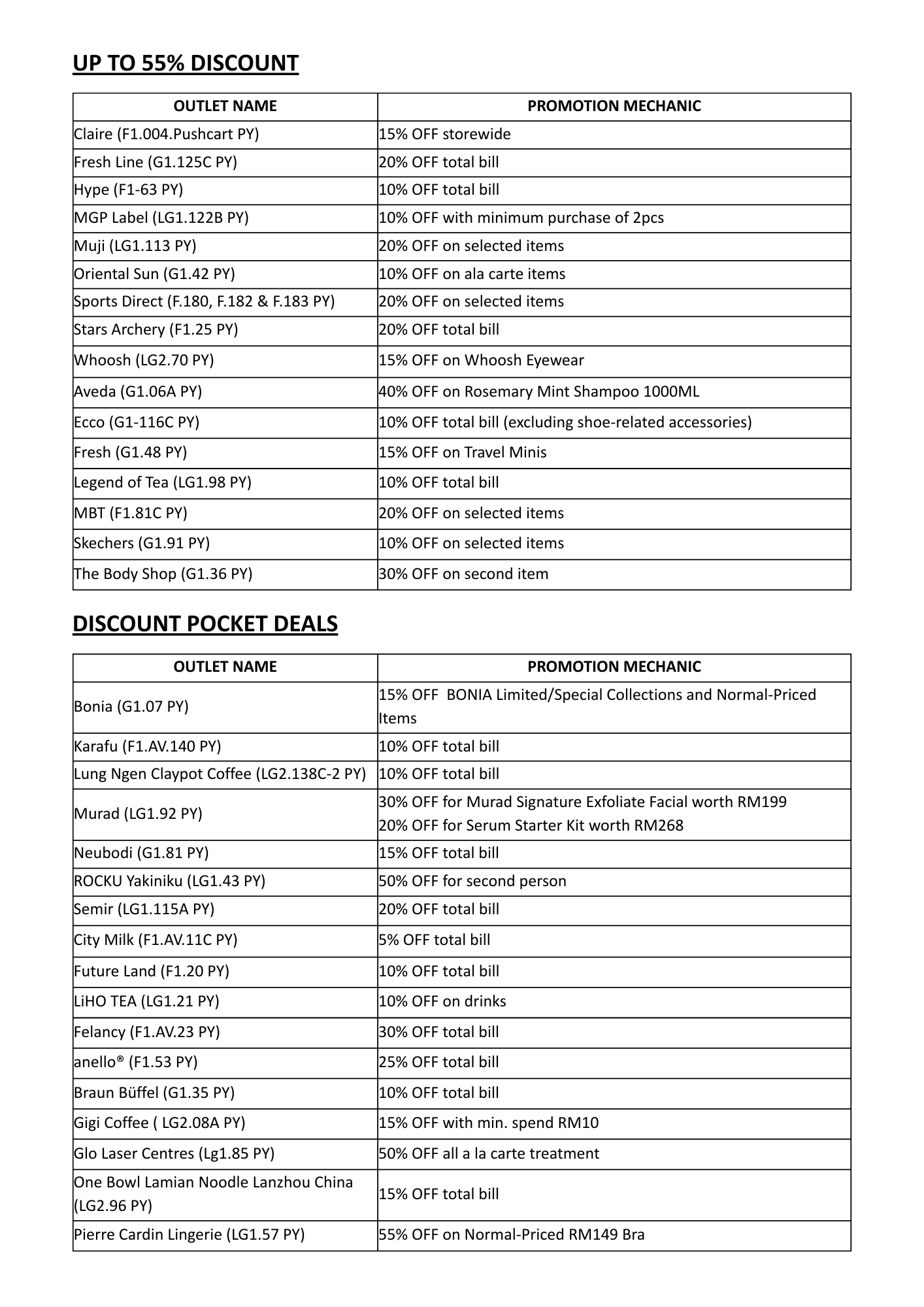 For specific terms and conditions of individual deals, kindly visit the respective merchant outlets and refer to their staff to find out more.